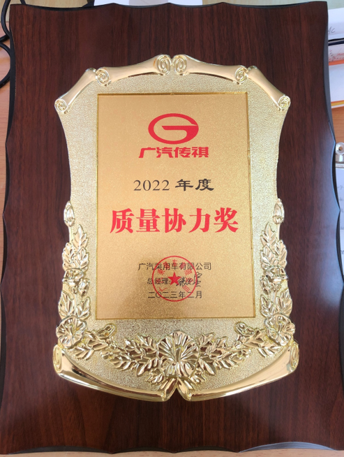 我司榮獲廣汽傳祺2022年度“質(zhì)量協(xié)力獎”